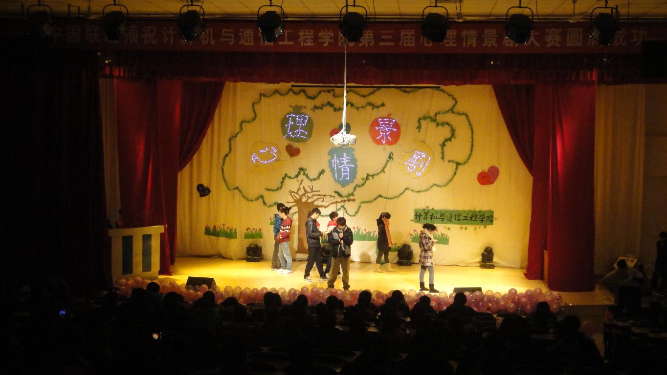 为了进一步提高同学们的心理健康素质,传播心理健康理念,激发同学们对大学生活的体验,关注自我心灵的健康,形成一种发现、思考、解决心理健康问题的新方式。计算机与通信工程学院于12月1日晚在科学校区电教楼208举办了以“提高大学生心理健康水平,传播心理健康理念”为主题的校园心理情景剧决赛。