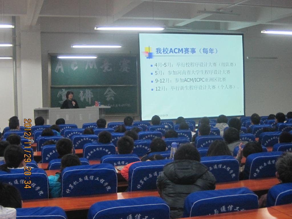 为提高大学生的创新能力、团队合作精神和解决实际问题能力,鼓励同学们参与校内外科研竞赛,11月29日晚计算机与通信工程学院在计算机系楼217和219举办“ACM竞赛宣讲会”。