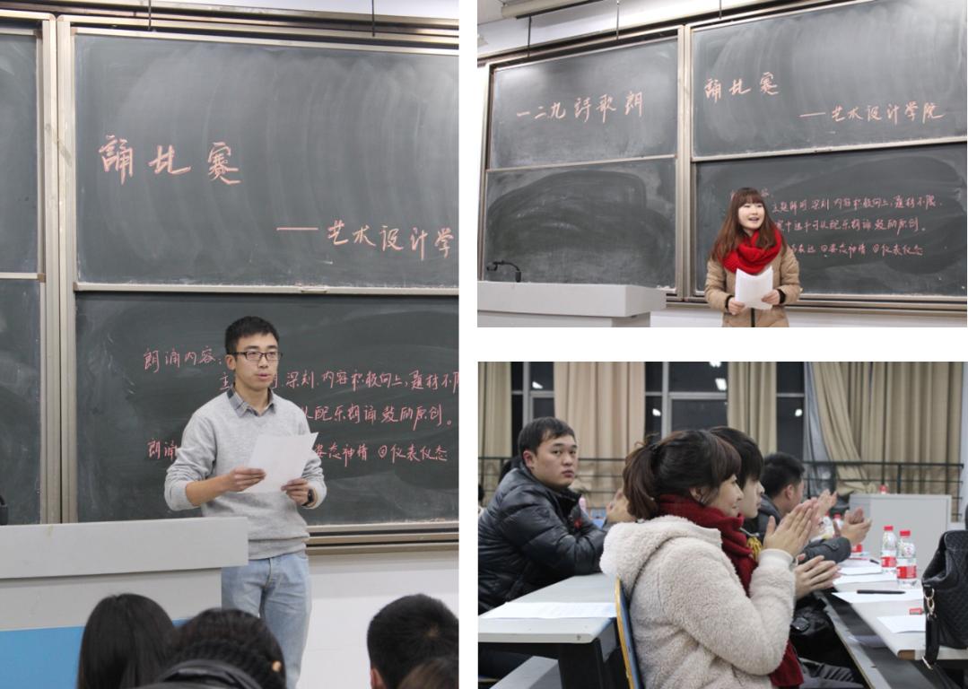 为提高我院学生的综合素质,激发团员青年学好知识、报效祖国的热情,艺术设计学院分团委于12月6日下午在西五楼多媒体教室举办了以“纪念一二•九”运动为主题的配乐诗朗诵比赛。