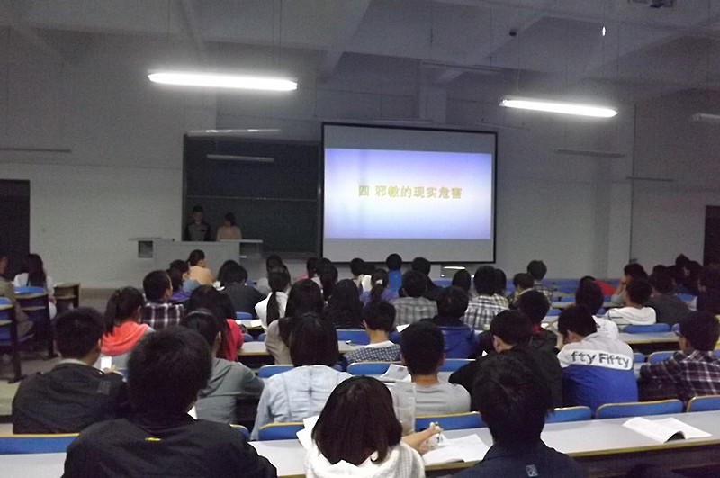 会上,主持人首先带领大家观看了《崇尚科学、反对邪教》视频,接着大会通过PPT以“宗教与邪教基本常识”、“邪教的主要危害”、“当前邪教的主要破坏手段”等八个主题,用近80幅生动的图片、翔实的文字资料的阐述,揭露邪教组织反人类、反社会、反科学的邪恶本质以及对社会、对家庭造成的严重危害和影响;同时也介绍了世界上一些典型邪教组织的情况及各国政府在反对和打击邪教组织方面的概况。