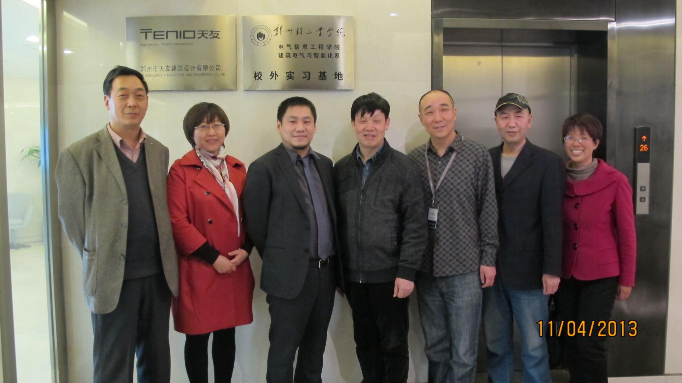 2013年4月11日,我校电气信息工程学院建筑电气与智能化系校外实习基地挂牌仪式在郑州天友建筑设计有限公司举行。电气信息工程学院院长崔光照、副书记刘吉彬、副院长曹玲芝、建筑电气与智能化系主任陈继斌、副主任曹祥红,郑州天友建筑设计有限公司总经理王东毅、副总经理白瑞耿、电气总工李跃龙及公司全体员工参加挂牌仪式。