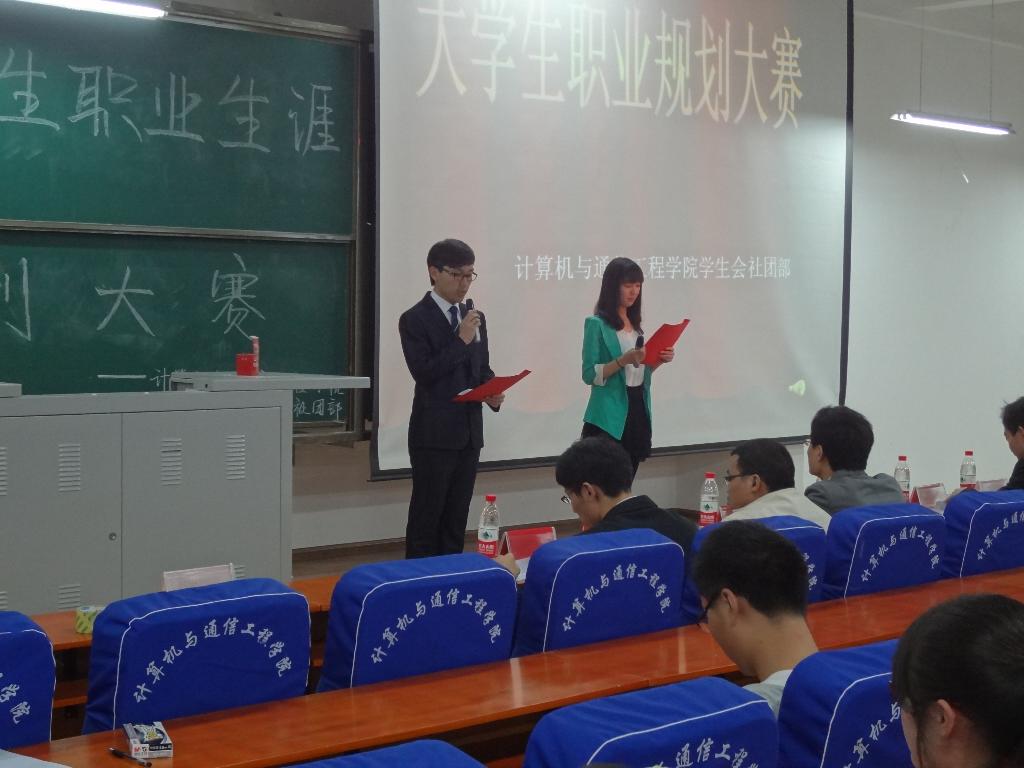 为让大学生了解社会,认识社会,增强社会责任使命感,帮助大学生明确职业发展方向,规划精彩职业生涯。4月24日晚,计算机学院在系楼217室举办了主题为“规划理想职业,成就精彩人生”的大学生职业规划大赛。我院11级,12级各班同学参加了此次比赛活动。