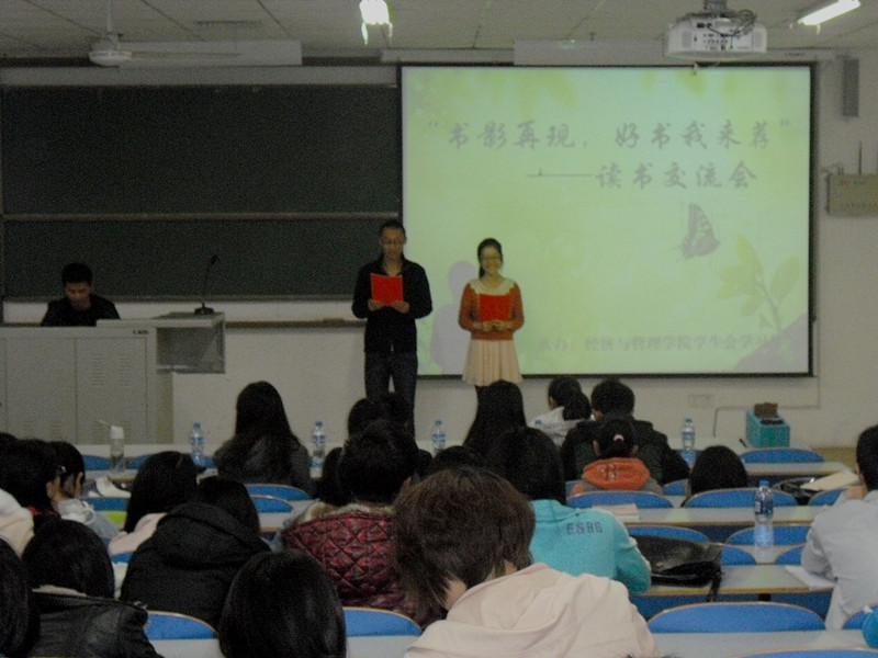 为了提高同学们读书的热情和兴趣,增强口语表达能力,营造良好的学习氛围,让“人人爱读书,读书乐无穷”成为同学们的共识。4月21日晚7:00,经济与管理学院在科学校区电教楼103室举办了“书影再现,好书我来荐”读书交流会。