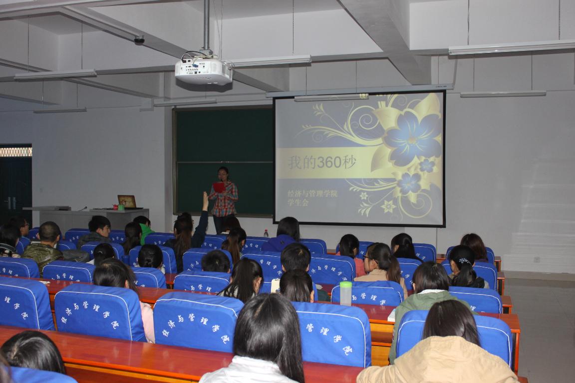 为了展现当代大学生积极向上的精神风貌,活跃校园文化氛围,搭建成长成才的平台,4月22日,经济与管理学院在科学校区经管楼211室举办了“我的360秒”风采展示活动。