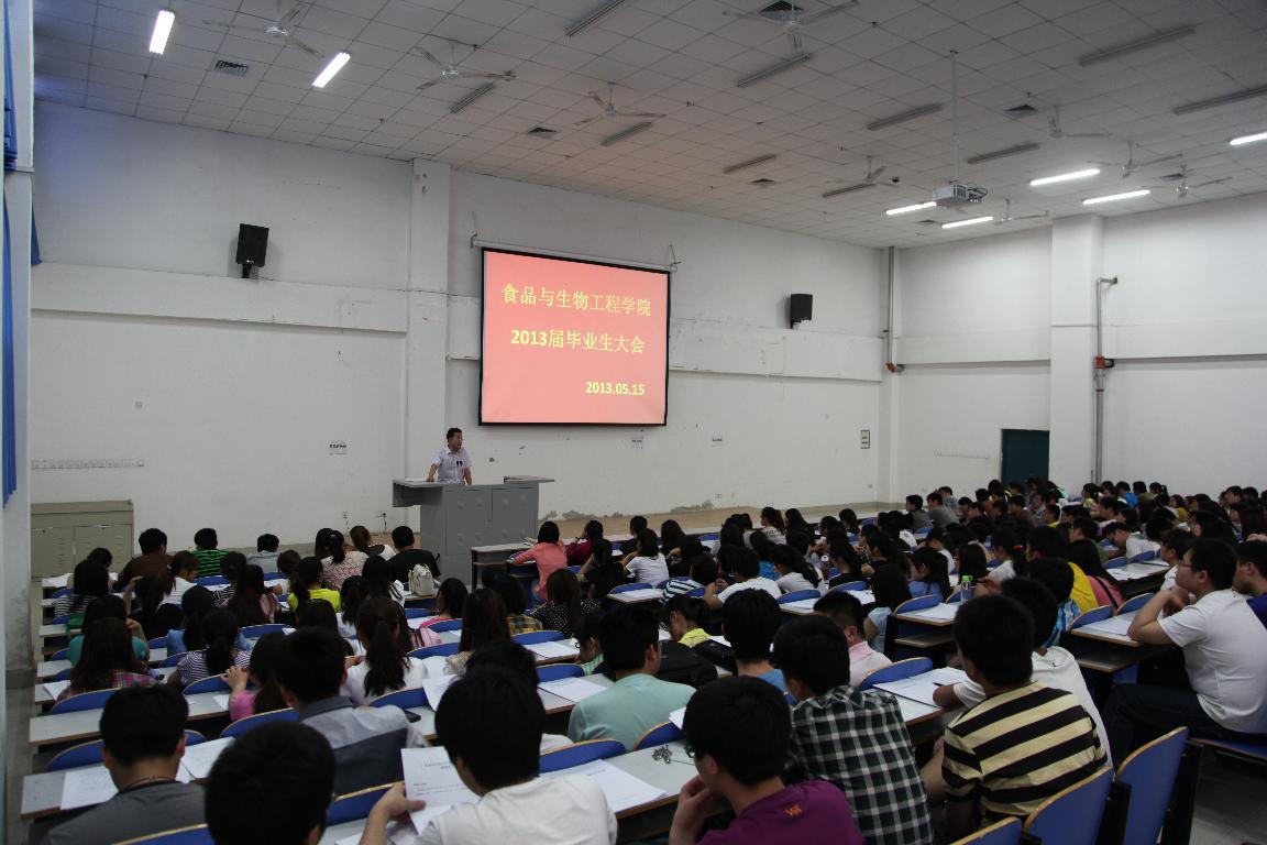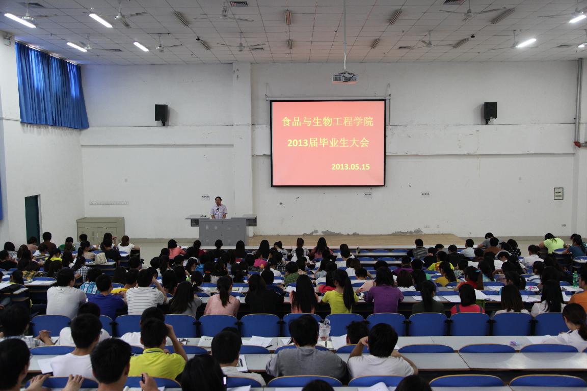 2013年5月15日下午2点,食品与生物工程学院在科学校区电教楼408教室召开全体毕业生会议。参加会议的有院党总支吴占超副书记、负责毕业生就业工作的孙浩老师及全体2013届毕业生。