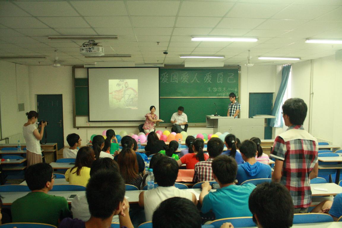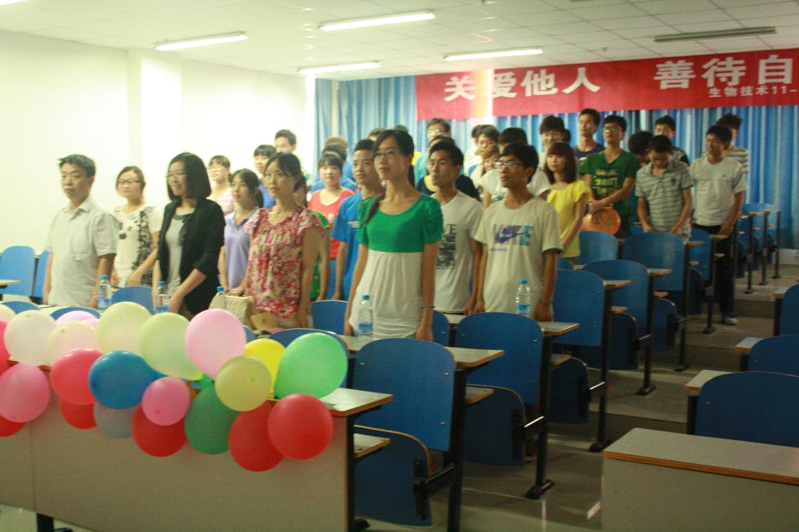 为响应学校心理健康宣传月活动的号召,迎接5·25心理健康日,食品与生物工程学院2011级生物技术专业于5月24日下午在西塔416举办了主题为“爱国、爱人、爱自己”的班会。心理健康教育中心副主任郑莺老师、我院学工办主任尚金清老师、2011级辅导员李燕老师深入班级与同学们进行了面对面的交流。