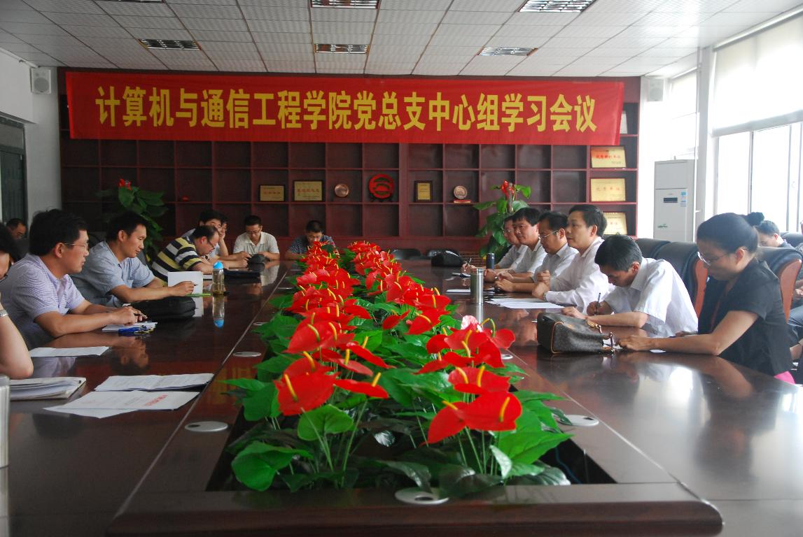 2013年5月30日下午3点,计算机与通信工程学院党总支在科学校区计算机学院楼213召开中心组(扩大)学习会议。会议由甘勇院长主持,学院党政领导班子成员、支部书记、系主任、实验室主任、博士、教授、副教授参加了此次会议。