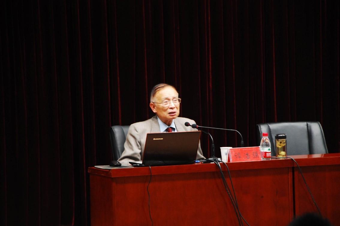 晚七点,讲座在热烈的气氛中拉开帷幕,79岁高龄的谭教授精神矍铄、风度儒雅,健步走入会场,并谦和的挥手向大家致意,全体师生起立报以长时间的热烈掌声。