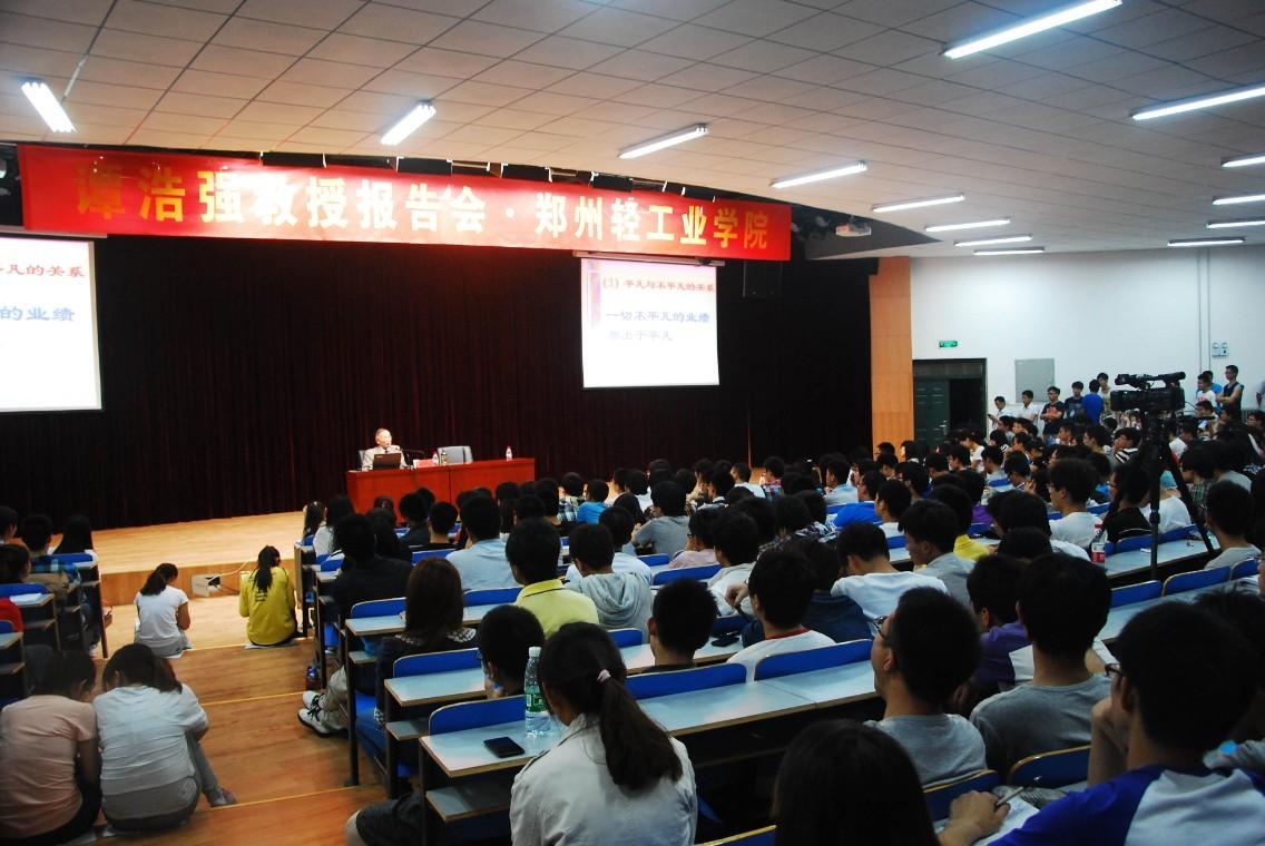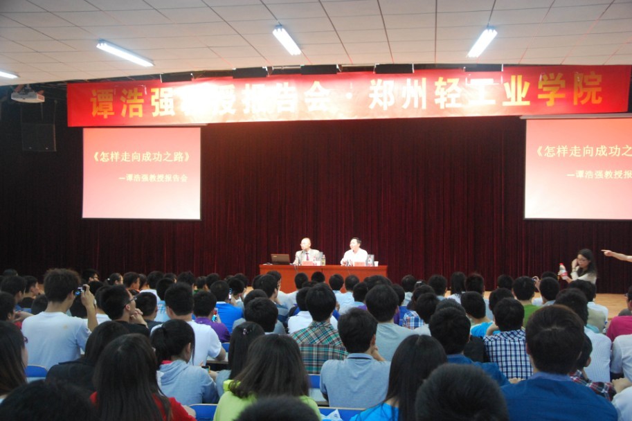 报告会上,谭教授结合自身在计算机研究和教育领域取得的成绩,讲述了如何正确处理人生发展中可能遇到的十大问题。包括:①个人发展与社会发展的关系;②机遇与努力的关系;③平凡与不平凡的关系;④政治和业务的关系;⑤理想与勤奋的关系;⑥学习与创新的关系;⑦专业与全面发展的关系;⑧顺利与挫折的关系;⑨个人成就与社会培养的关系;⑩年轻打好基础与一生健康发展的关系。在讲到个人与社会的关系时,他认为,自己成功的土壤在中国,中国人就应该为祖国的发展尽心尽力,引发了大家的共鸣,现场爆发出热烈的掌声。当讲到顺利和挫折的关系时,他告诫同学们失败要沉思,成功要谨慎,希望大家要坚韧不拔、自强不息。在论述政治与业务的关系时,他告诉同学们要把人民群众的评价作为心中的一杆秤,把实践检验作为工作中的唯一标准。在谈到健康与发展的关系时,他勉励大家年轻时就要为一生的健康发展打好基础,热爱自己的生活,更要热爱自己的祖国,强健体魄,奋斗不已。谭浩强教授朴实的话语,句句体现了他的拳拳爱国之心及对青年学子的殷切希望。他还从思想修养、科学修养、道德修养、文学修养、艺术修养等几个方面提出了当代大学生应该具备的综合素质,他指出,大学阶段是确立人生观、世界观的关键时期,只有年轻时打好基础才能使人的一生健康发展,走向成功之路。他鼓励同学们,要想在一生中有所作为,就要从年轻时开始做起,抓紧时间塑造自己。