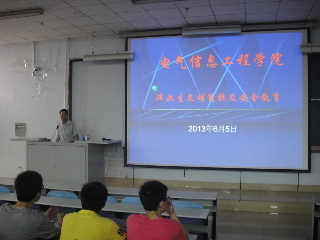 在2013届毕业生即将毕业离校之际,电气信息工程学院召开文明离校动员会,毕业班辅导员老师、全体毕业生参加会议,会议由学院党总支副书记刘吉彬主持。