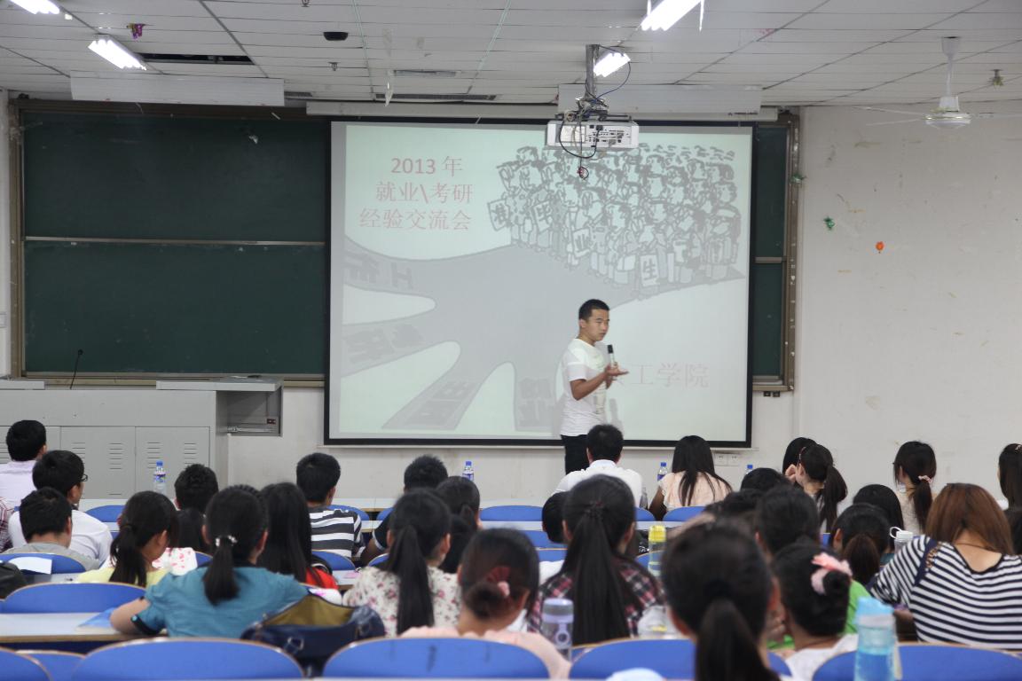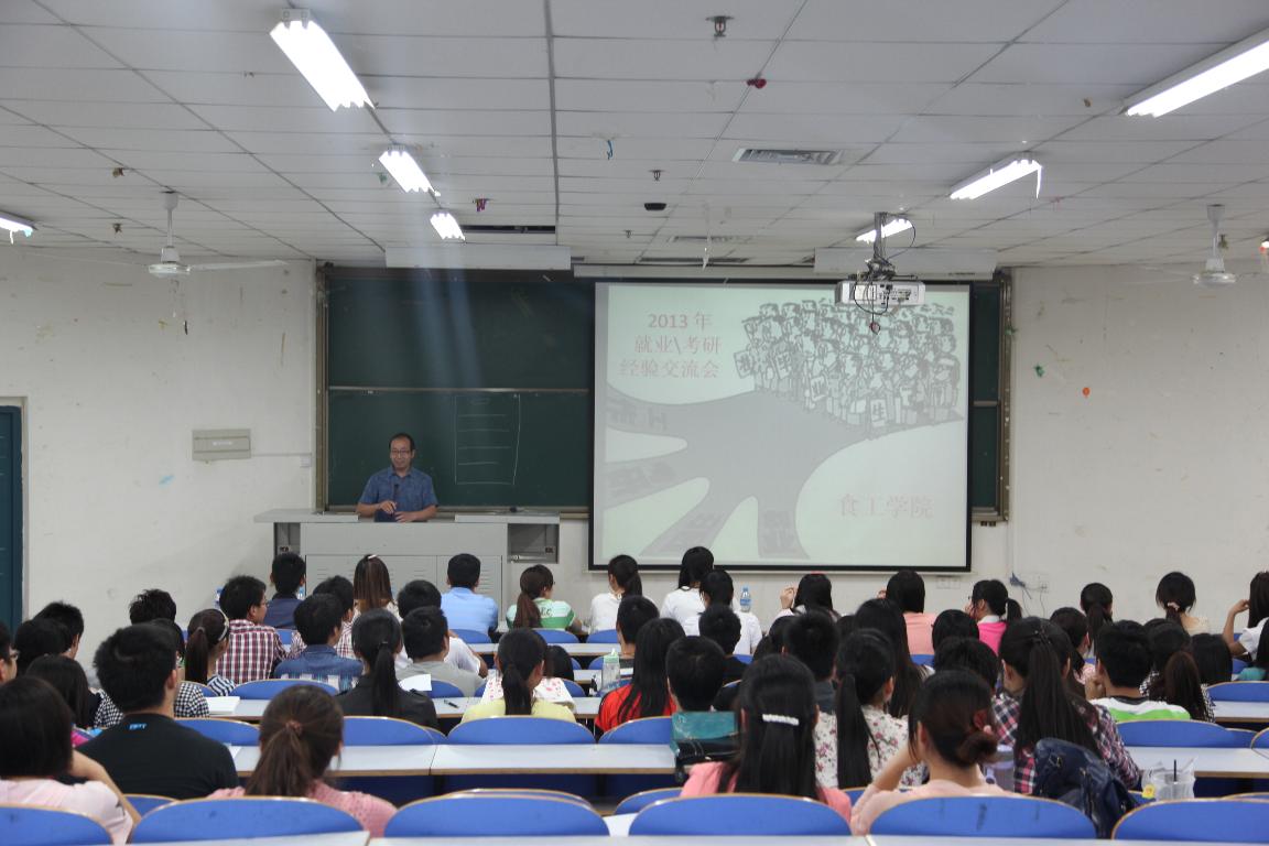 5月30日下午,食品与生物工程学院2013年考研、就业经验交流会在科学校区电教楼108教室举行。党总支副书记吴占超、副院长刘延奇及2013届考研和就业突出的学生代表在会上与同学们进行了交流,2010、2011级学生参加了会议。