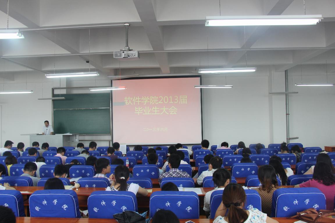 为进一步做好毕业生文明离校工作,软件学院分别于6月7日、11日在科学校区软件楼219、电教楼408召开2013届本专科毕业生文明离校大会。软件学院党总支副书记武丰龙老师、全体辅导员老师和2013届毕业生参加了此次会议。