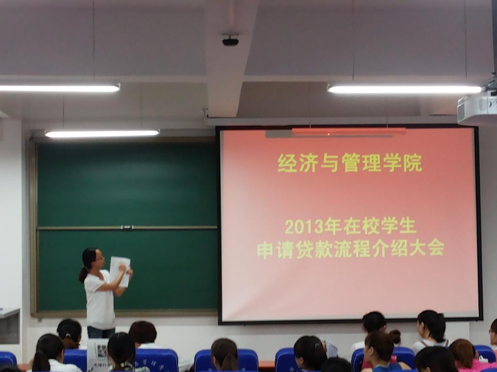 为使同学们更加深入了解国家助学贷款的相关操作事宜,7月2日下午5点,经济与管理学院在科学校区经管楼211室举行了2013年在校生申请贷款流程介绍大会。