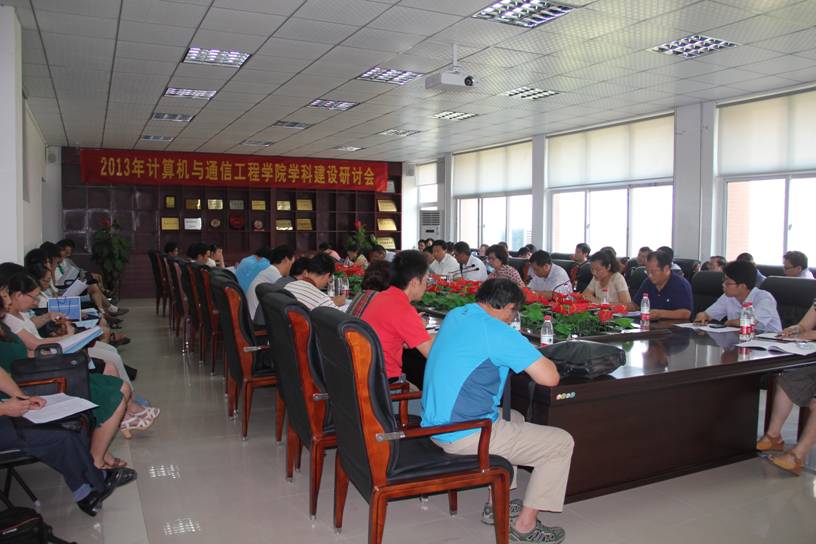 ,计算机与通信工程学院在科学校区计算机楼213会议室召开了为期一天的2013年度学科建设研讨会。会议主题是“勇于担当,攻坚克难,力争我院学科建设科研工作新突破”。吕彦力副校长出席了会议并讲话。研究生处、科技处负责人,计算机学院党政班子成员、系部主任、教授、副教授、博士和学科骨干成员63人参加了会议。会议由贾菁菁书记主持。