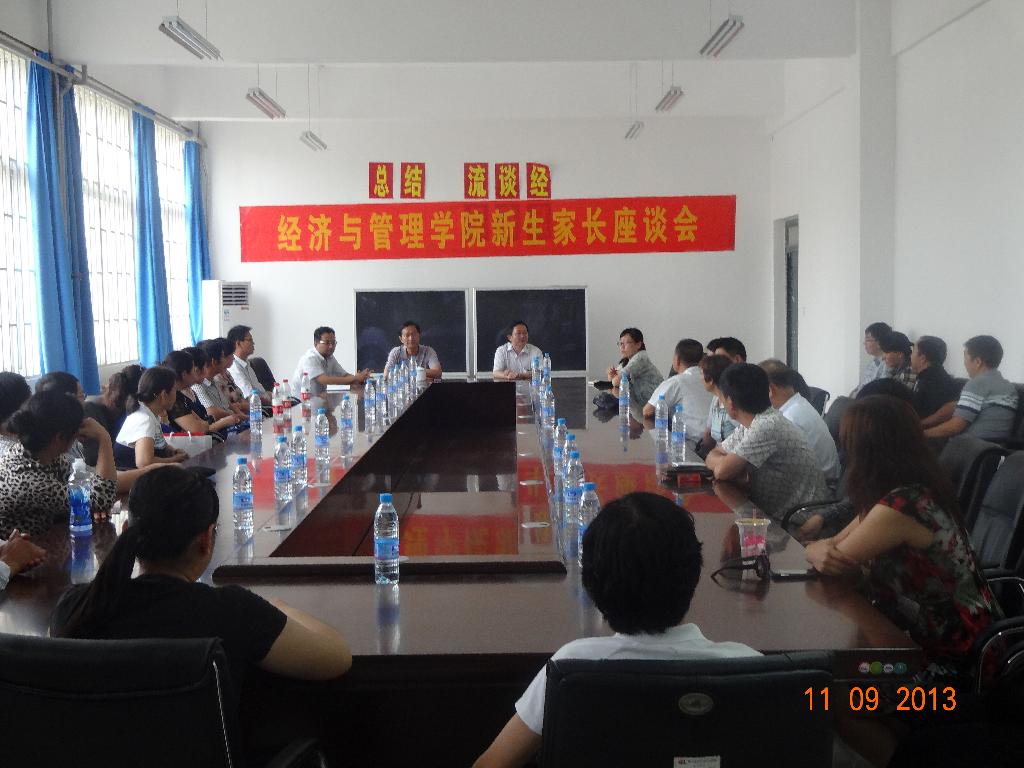 为了加强学校和家长之间的沟通,更好地促进大学新生的健康成长,9月11日下午3:00,经济与管理学院在科学校区经管楼116室举办了2013级新生家长座谈会。经济与管理学院领导班子成员、部分专业教师和专兼职辅导员参加了本次座谈会。