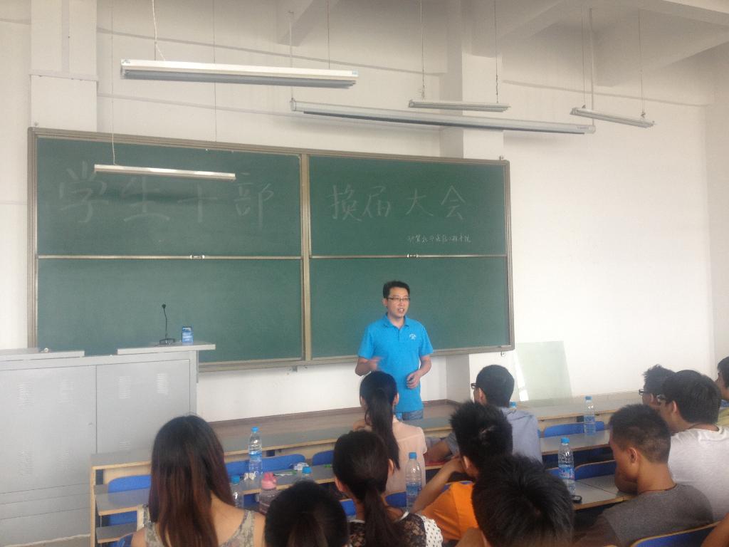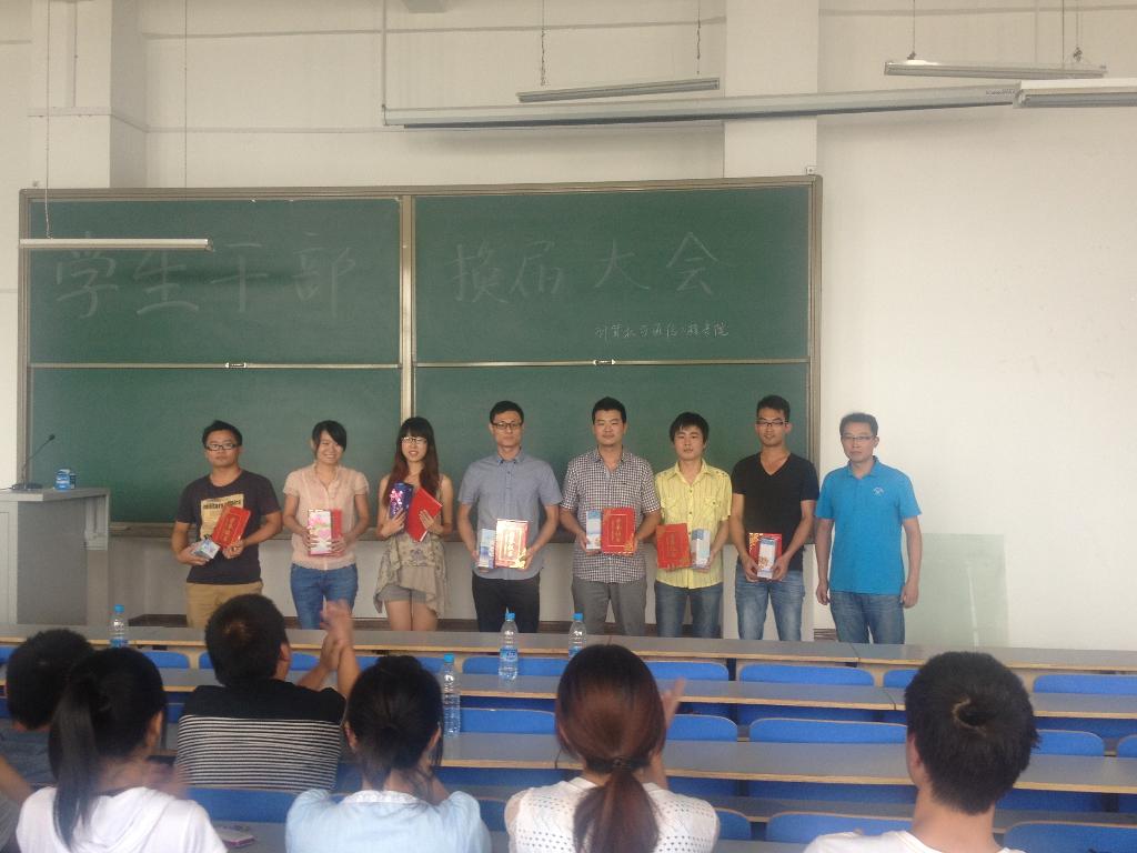 9月17日,学院召开了计算机学院学生干部换届大会,分团委书记宋文军老师、学工办副主任司丽娜老师出席会议。会上首先由司丽娜老师宣读了新一届学生会、学生分团委、大学生党员工作室主要负责人名单,并为上一届学生干部颁发了荣誉证书和纪念品。接着10级主要学生干部依次上台进行了发言,大家对一年来的工作进行了总结并对新一届学生组织提出了新的目标和要求,最后宋文军老师代表学院对10级学生干部一年来的工作表示感谢,总结了这一年来各学生组织的工作情况和所取得的成绩,并对新一届的学生干部提出了要求。希望大家能团结一致、积极进取、努力工作,为学院学生工作贡献自己的力量。