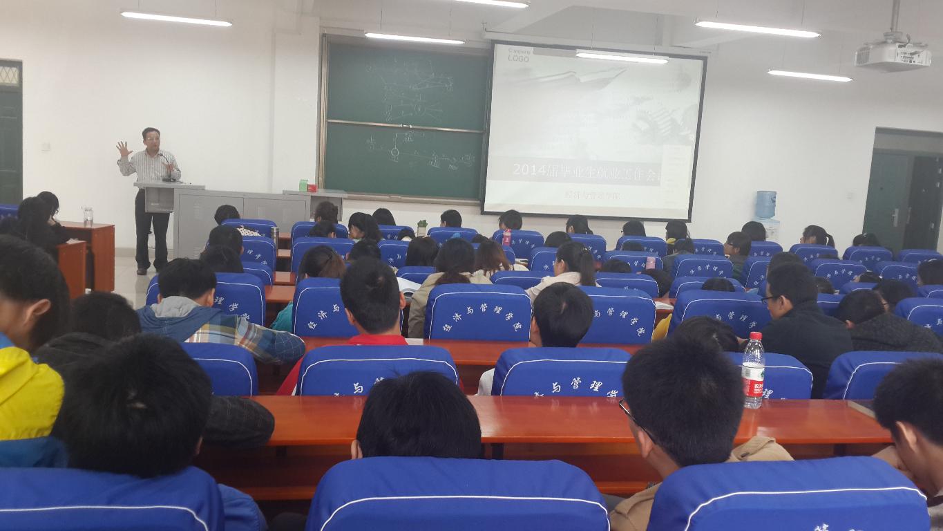 10月21日,经济与管理学院在科学校区经管楼211召开了2014届毕业生就业工作大会。大会由经管学院负责就业工作的宋正凯老师主持,经管学院党总支副书记刘洪民老师出席了大会并对全体毕业生给予了指导与动员。经管学院2010级全体毕业生参加了此次大会。