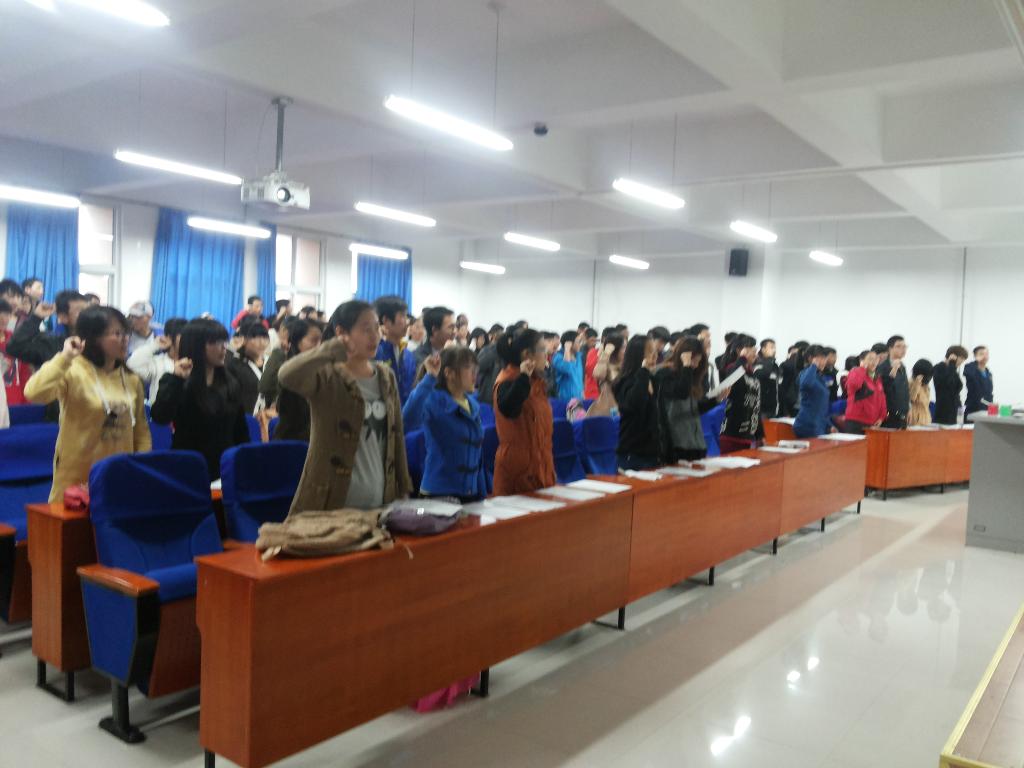签约手续完毕后,全体贷款同学进行了集体诚信宣誓,表示一定会珍惜机会,努力学习,自强不息,诚信做人,以优异的学习成绩和良好的信誉回报母校和社会。此次大会的成功举行也为我院助学贷款工作健康、持续、良性开展打下了坚实的基础。