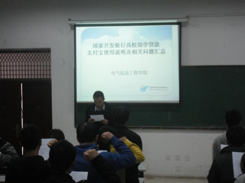 负责贷款的老师对贷款系统做了介绍,着重讲解了系统的使用和支付宝的相关问题,就国家助学贷款合同签订的注意事项做出了详细的说明,最后对同学们的疑问做了一一解答。