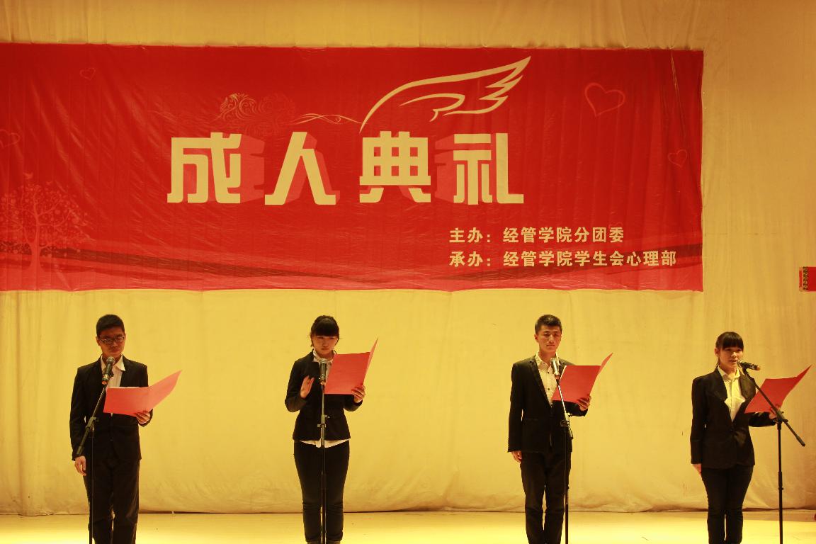 为加强爱国主义、民族精神和自立自强教育,大力弘扬和传承民族文化,让学生懂得自己肩负的责任、权利和义务,努力实现自己的人生价值,11月5日晚,经济与管理学院在科学校区三教楼208室举办了第三届成人宣誓仪式。
