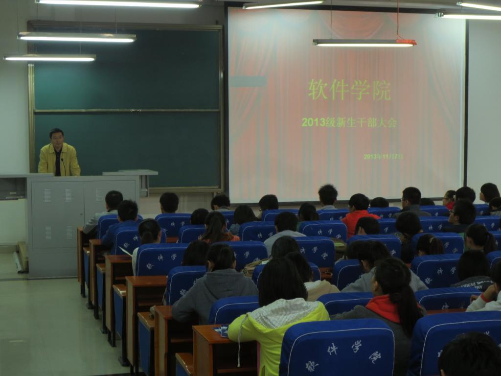 为全面推进学生组织和班级建设,增强学生干部的使命感和责任感,11月7日中午,软件学院在软件楼219召开2013级全体学生干部培训会,党总支副书记武丰龙和全体专职辅导员参加了培训会。