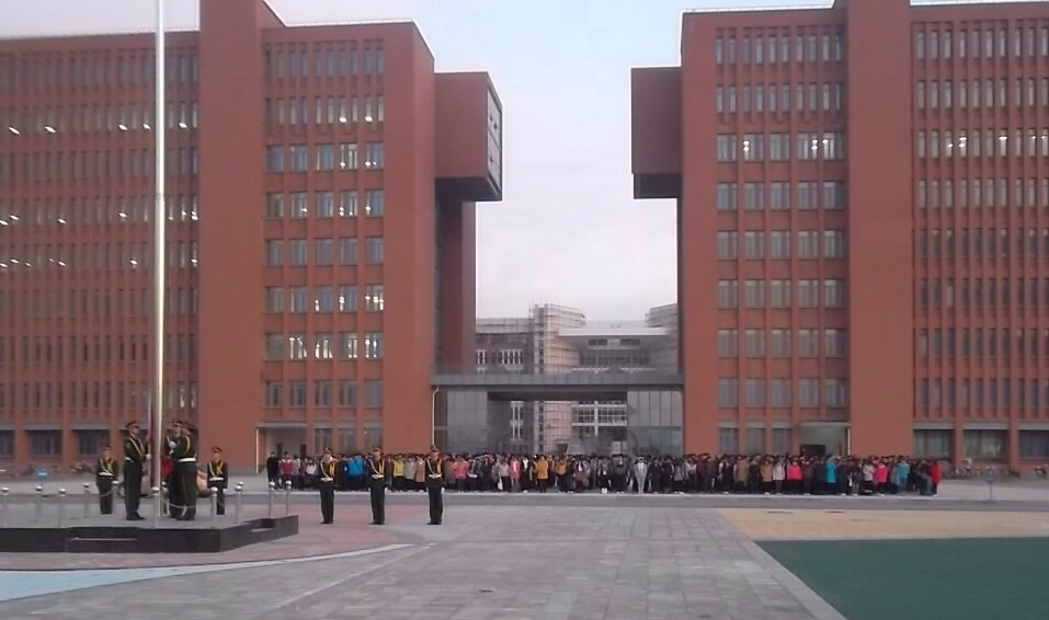 早上六点四十分,全体同学在主教楼广场前整齐有序地列队站齐,启动仪式暨升旗仪式正式开始。国旗手们迎着朝阳,踏着整齐的步伐,护卫五星红旗到达升旗台。气势恢宏的《义勇军进行曲》随之响起,冉冉升起的五星红旗迎风飘扬,全体师生面向五星红旗庄严地行注目礼。接下来,2012级学生代表沙攀攀同学发表了以“放飞中国梦、凝聚爱国情”为主题的国旗下的演讲,介绍了“一二·九”运动的历史背景,号召广大同学要铭记历史,发扬传统,牢记使命,奋发图强,以饱满的精神面貌和实际行动践行“中国梦”,把自己的前途命运和祖国的伟大复兴紧密结合起来,为了祖国的繁荣富强贡献自己的青春和力量。同学们也因着激昂的讲话心潮澎湃,爱国热情油然而生。