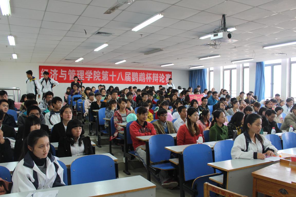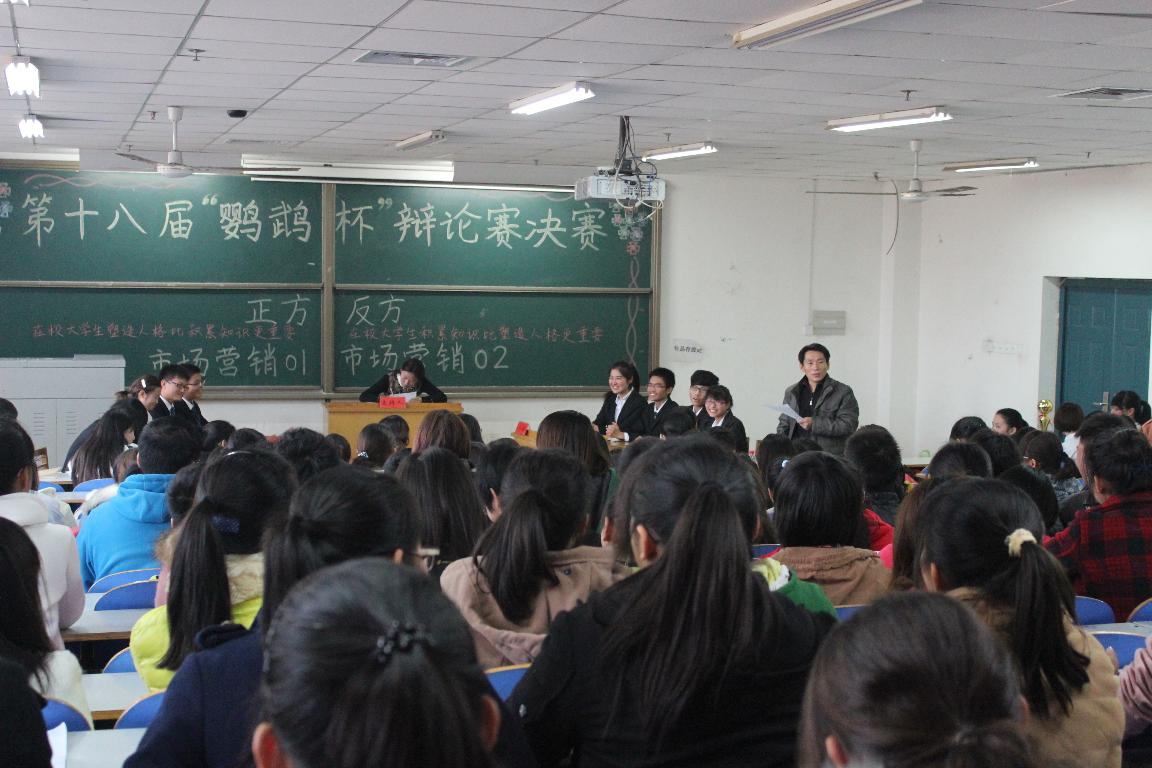 11月14日下午,经济与管理学院举办了以“汇聚正能量,青春梦秀场”为主题的第18届“鹦鹉杯”辩论赛决赛。