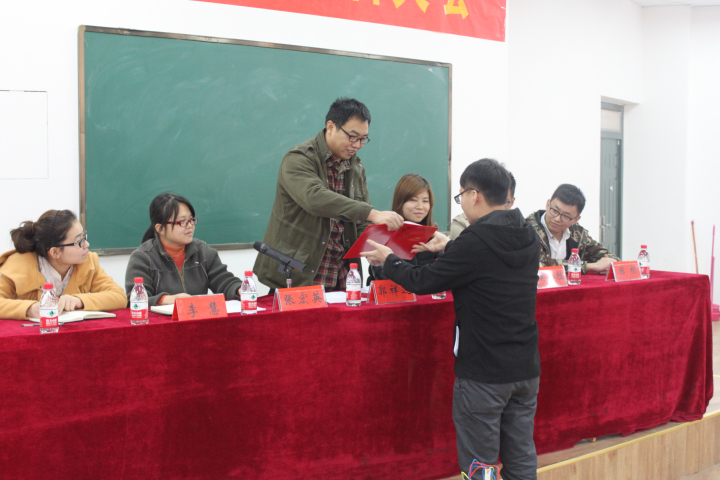 11月14日中午12点30,政法学院在科学校区模拟法庭112室召开第十一届学生会换届大会。学院党总支副书记郭祥远老师、分团委全体老师、学生会全体成员参加了会议。