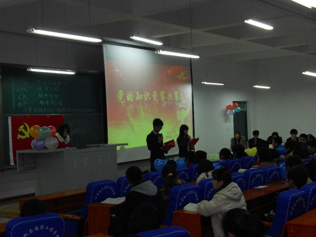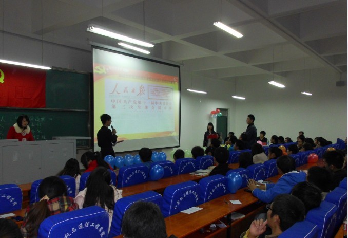 11月17日,计算机与通信工程学院在科学校区217教室举办以“我的梦党在我心中”为主题的党的知识竞赛教育活动。学工办和分团委老师、党员工作室全体成员、2012级200多名学生参加了该活动。