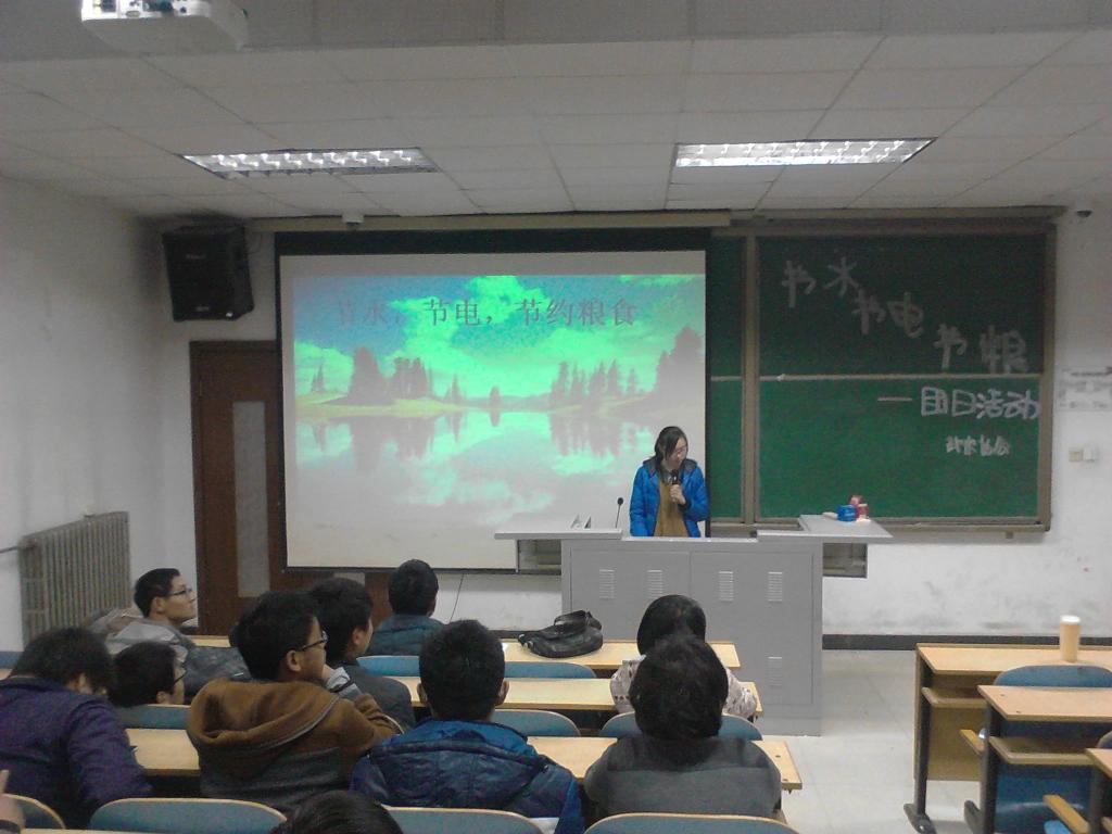 2013年11月22日晚7:30校团委主办,武术协会承办的以“节粮节水节电”为主题的团日活动在教二楼西一阶教室开展。此次活动旨在让当代大学生增强节水节电节粮的意识,减少浪费。