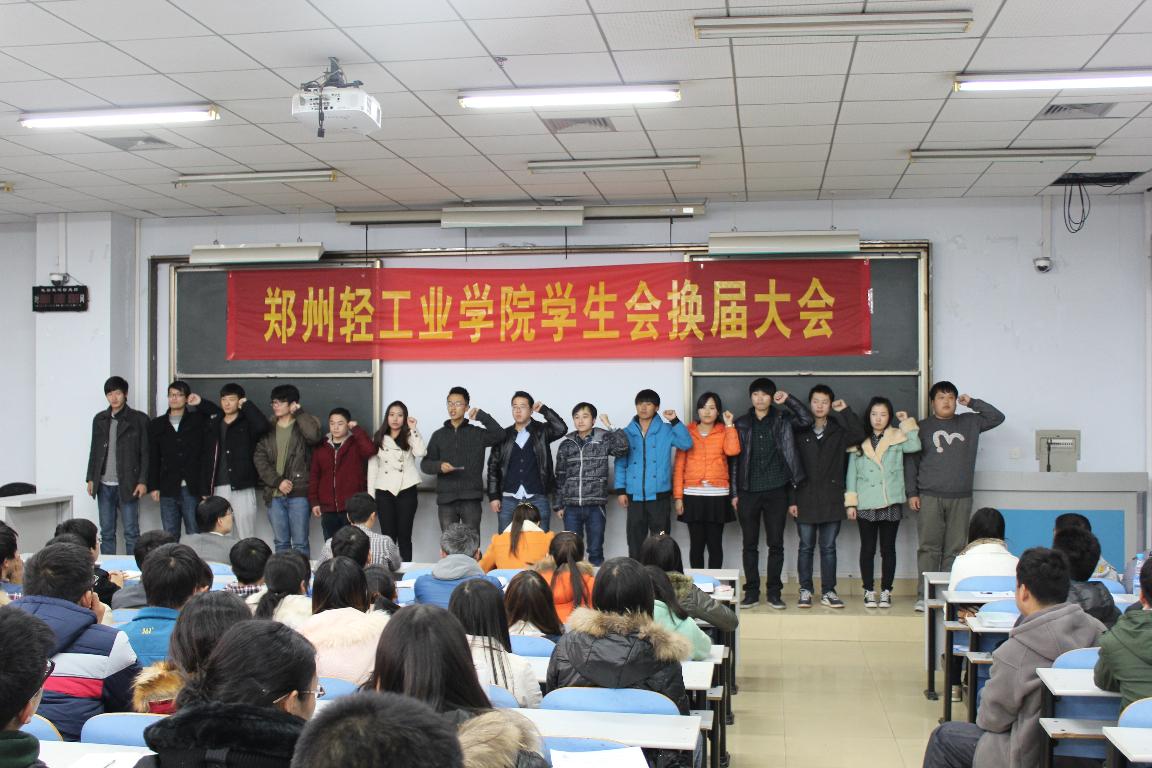 11月26日中午,郑州轻工业学院学生会换届大会在教三楼204室举行。校团委张世涛老师,张超钦老师,杨阳老师出席大会。两校区学生会主要干部参加了此次大会。会议由学生会副秘书长李鑫主持。