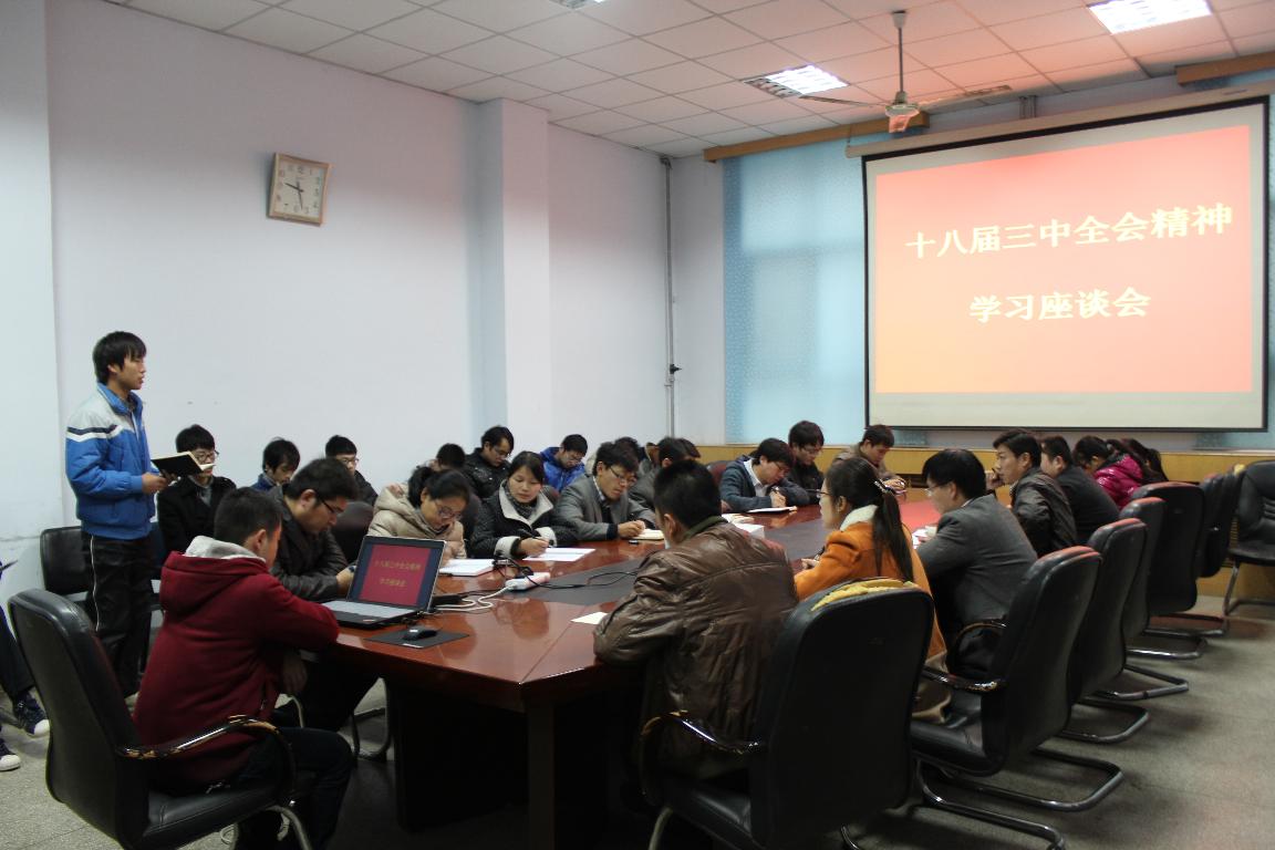 2013年11月26日上午,校团委在西一楼104室组织各院系分团委书记和学生干部代表学习十八届三中全会精神。会议由校团委书记张世涛主持。
