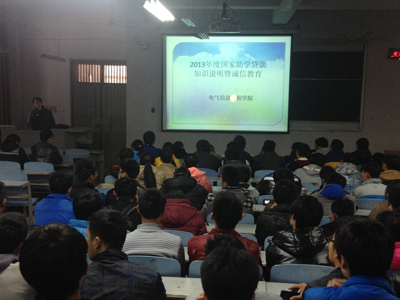 2013年11月28日下午,为了加强同学们对国家助学贷款方面的了解,以及解决在此方面同学们遇到的问题。电气信息工程学院在东风校区西五楼514举办了助学贷款知识宣讲及问题解答。