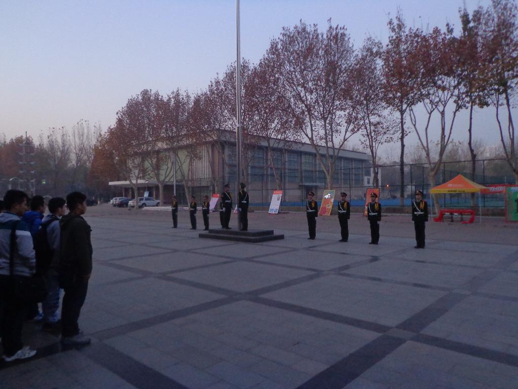 12月2日,物理与电子工程学院和数学与信息科学学院在东风校区图书馆广场举行升国旗仪式。