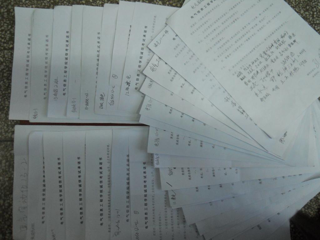 在诚信考试宣誓大会之前,各专业班级开展了“积极备考,诚信考试”的专题班会,全体同学签订了诚信考试承诺书。广大学生表示将有计划地开始期末复习,积极准备即将到来的四、六级考试和期末考试,遵守校规校纪,诚信考试,杜绝一切考试违纪作弊现象。