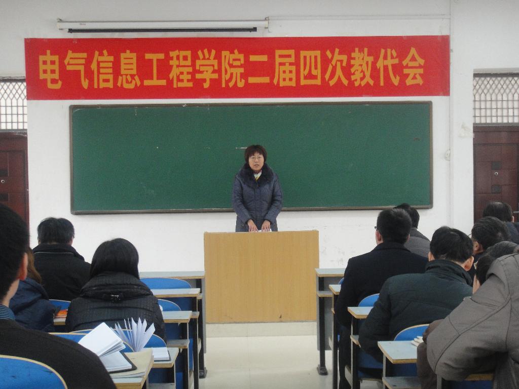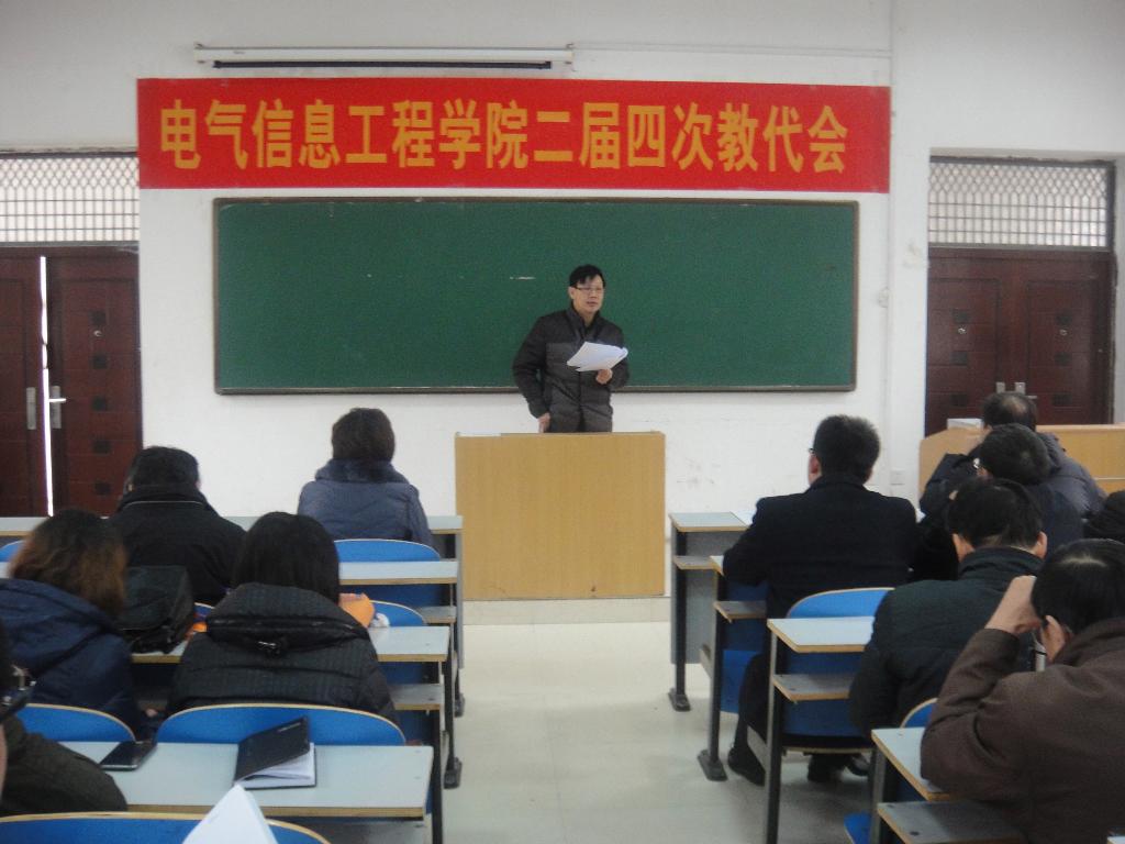 根据工会工作和教代会工作有关条例,经校工会批示,电气信息工程学院二届四次教职工代表大会于2013年12月26日下午2:30在西二楼阶梯教室召开。学院31名教职工代表参加会议,会议由党总支书记曹玲芝教授主持。