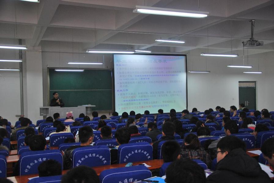会上,学工办主任沈高峰老师首先详细分析了目前毕业生就业面临的形势,鼓励毕业班学生利用河南省毕业生信息就业网、各高校就业指导中心以及企业人力网站等各种有效渠道抓住春节前后招聘关键期,实现及早就业、充分就业。其次沈老师还对学生在签订就业协议的注意事项进行了说明,保障了学生在签订就业协议时做到手续完整完备。对一部分已经签订就业协议的同学进行了肯定,要求已达成就业意向的同学调整心态,积极签订就业协议,并鼓励没有落实就业单位的同学通过多种途径积极就业。最后,沈老师就毕业生关心的校外毕业设计申请流程及管理办法进行了讲解,要求每位学生都要认真做好毕业设计,按照学校及学院有关规定办理外出手续。