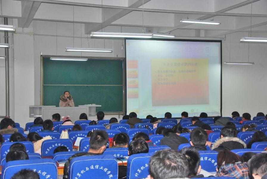 2014年1月7日中午12:00,计算机与通信工程学院在科学校区计算机楼217多媒体教室召开学院2014届毕业生就业动员及贷款毕业生会议。学院总支副书记葛勋老师、学工办主任沈高峰老师、负责就业与资助工作辅导员参加了此次会议。