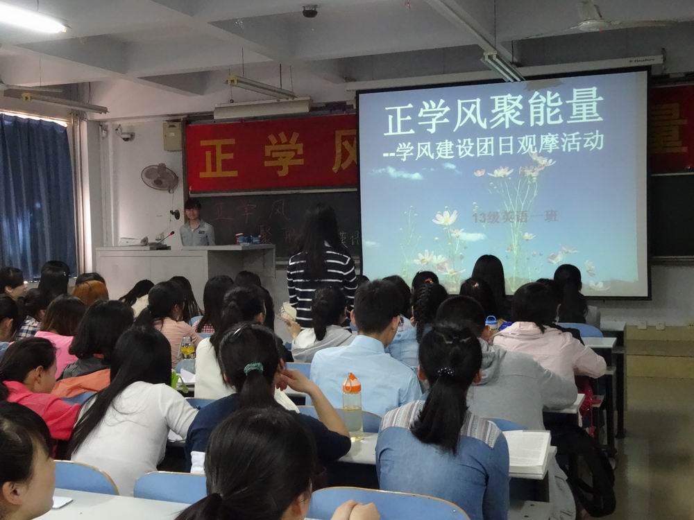 为进一步加强我院学风建设,3月27日下午,外国语学院分团委在教三楼307室举办“正学风聚能量”团日主题观摩活动。此次活动由英语13-01班团支部策划,12、13级各班班委进行了观摩。