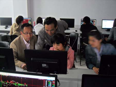 4月17日在经管楼211由竞赛指导老师和专家对参赛学生进行分类培训,围绕如何选股和择时,从基本面分析和技术分析两个方面进行讲解。竞赛赞助方国泰安,在国内多所高校举办过投资竞赛活动,提供拥有国内最先进、最逼真的虚拟交易平台和技术支持,讲师桂晓途、胡曙光介绍软件应用和操作的相关知识。动员大会和基本操作知识讲解结束后,学生热情高涨,对比赛充满期待,纷纷咨询相关问题。
