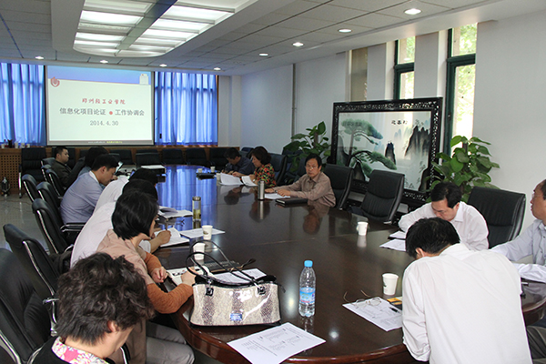 2014年4月30日下午三点,学校组织信息化领导小组相关成员在办公楼二楼会议室举行了信息化项目论证及工作协调会,会议由陈江风院长主持。