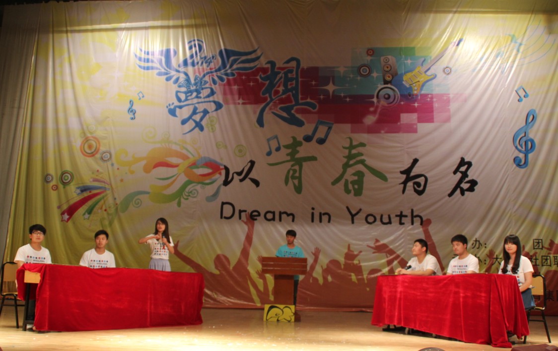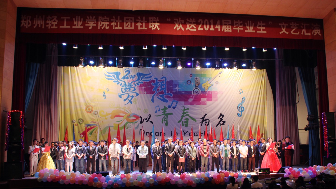 晚上7点, “梦想,以青春为名”社团联合会送2014届毕业生文艺汇演在大礼堂隆重举办。参加晚会表演的有社联及各个社团的优秀成员,全校一千多名学生观看了此次晚会。