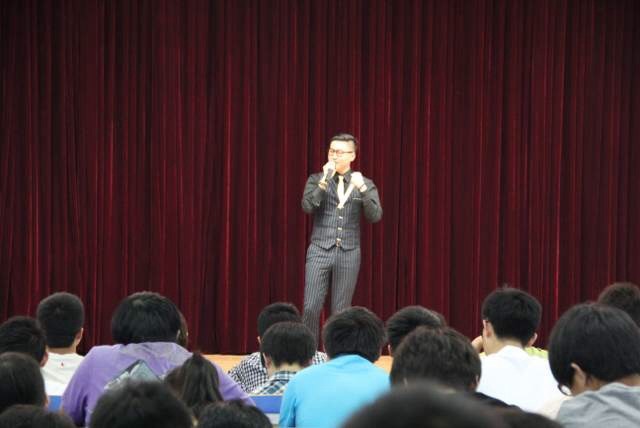 老师。活动现场,他首先从“脱口秀”文化和概念谈起,总结了一些脱口秀的文化精神和语言表达技巧对人生的重要性,并和同学们分享了自己的梦想和如何成为一名主持人的经历以及工作中的经验和趣事。他以生动的故事,幽默的语言,丰富的文化信息,哲学思维的思辨,向同学们讲述如何为语言做好准备、为思想做好准备、为自己做好准备,如何脱颖而出!让同学们在欢笑声中度过了一个多小时的时光。