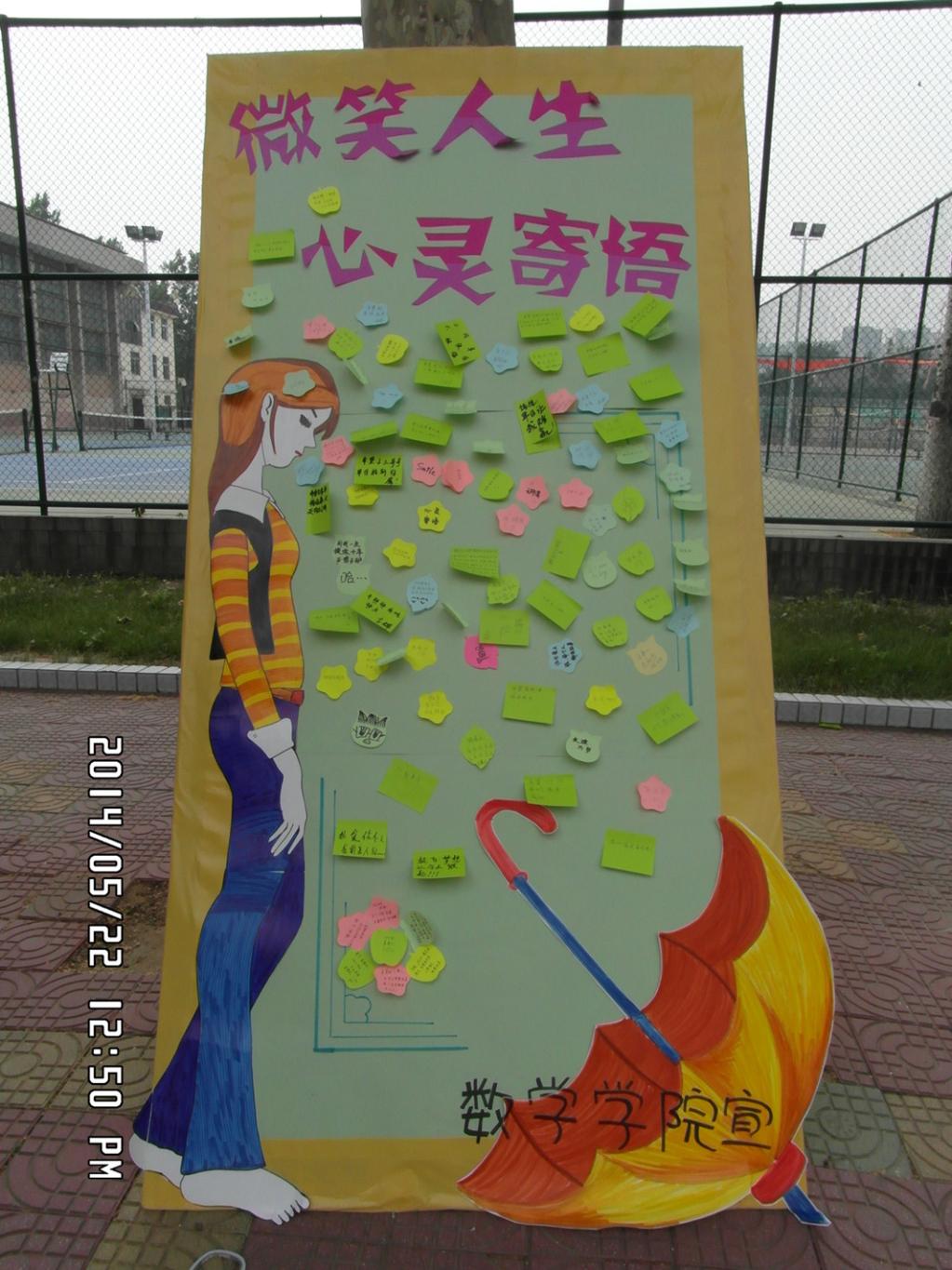 在活动过程中,广大同学积极参与,将自己对学习、对生活、对他人的真情实感以及对人生的感悟通过寄语板这个平台广播出去,并从这个平台上获得了心灵上的支持,得到了心灵的满足。从而也使活动达到了帮助同学们释放心灵,传递正能量目的。