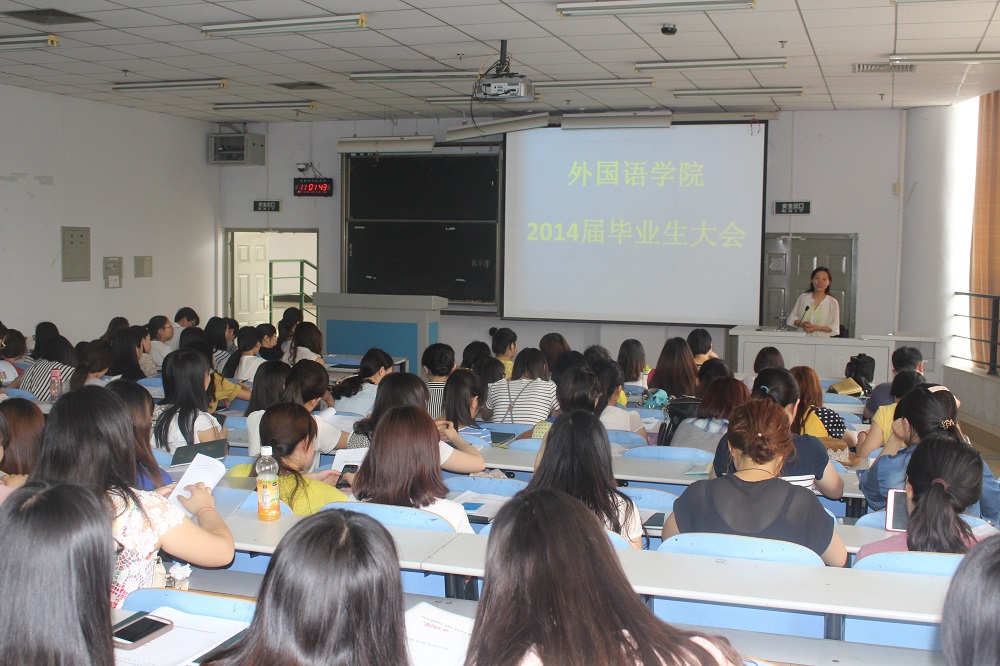 5月22日上午,外国语学院在教三楼200教室召开2014届毕业生大会。党总支副书记孔祥娟、毕业班班主任、负责就业工作老师及全体毕业生参加了大会。