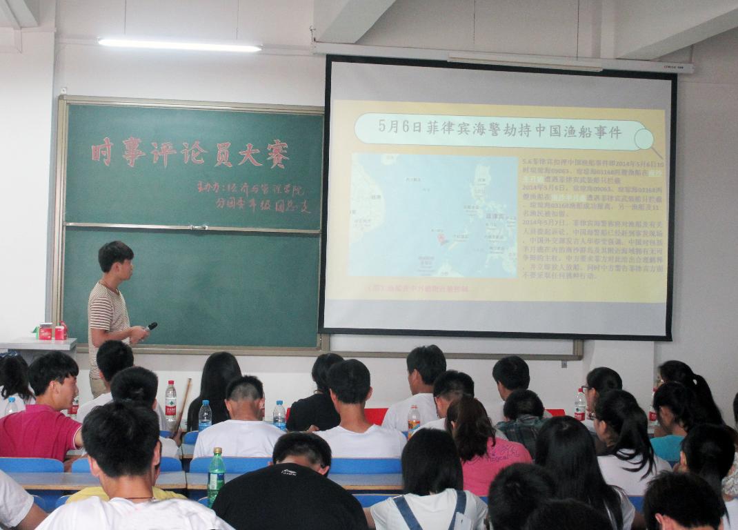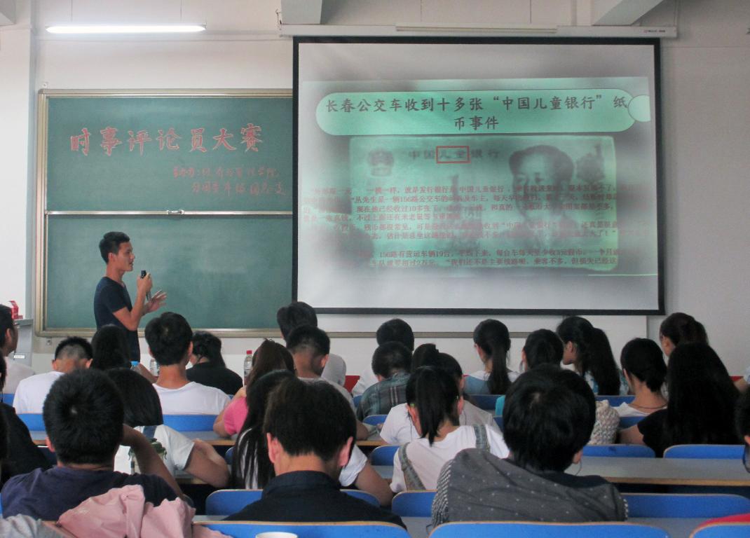 为激发广大青年学生的爱国热情,加强思想政治教育,引领校园和谐之风,5月22日,经济与管理学院在经管楼309举办了“与信仰对话”时事评论员大赛。