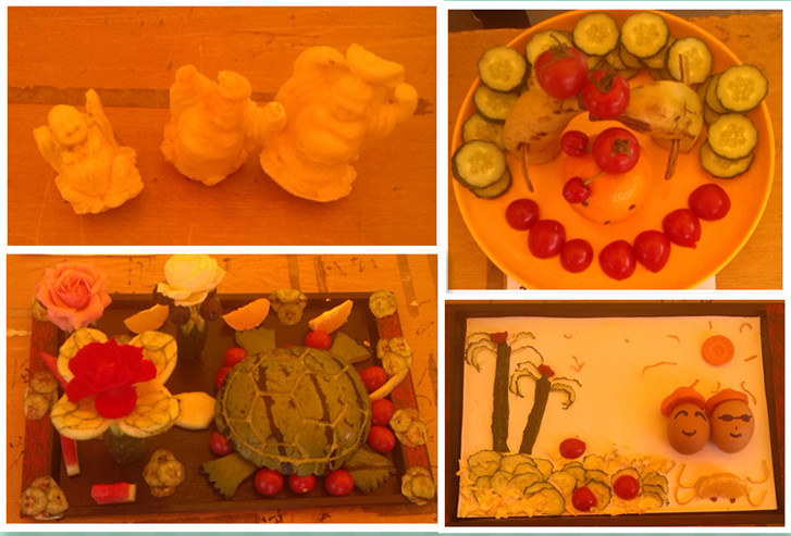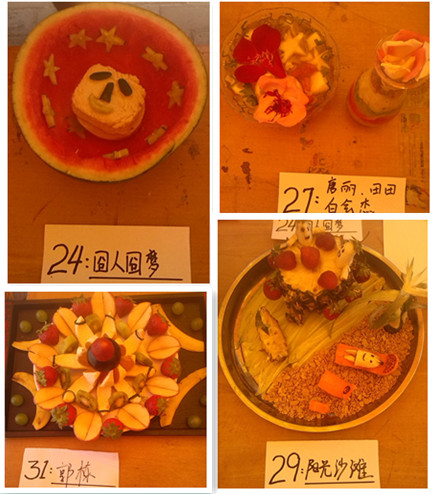 工艺食品创新制作是由小组成员合作制作一个具有创新,又有寓意的新型工艺食品(如新型拼盘,自创菜肴等)。比赛时由小组成员对作品进行介绍,由专业老师根据其作品创意、作品外观、作品寓意、作品工艺、营养价值、小组介绍、观众气氛等综合进行点评。作品由专业老师打分及观众投票综合确定获奖名次。