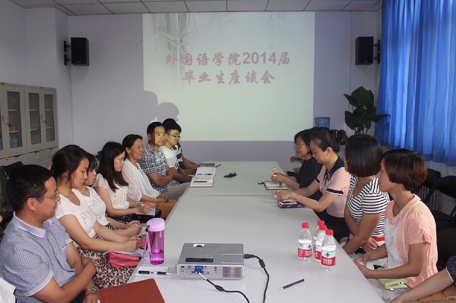 6月9日上午,外国语学院在东二楼306会议室召开2014届毕业生座谈会。学院党政领导、各教研室老师、辅导员和学生代表参加座谈会。