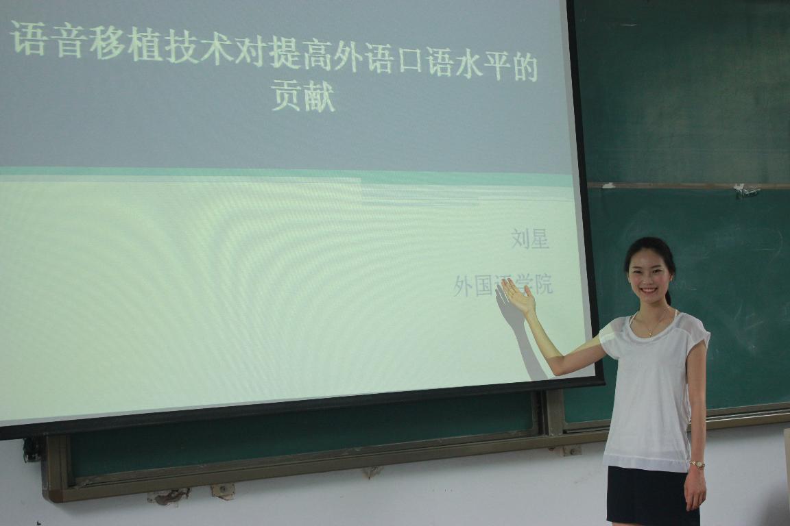 根据我校科技处“博士论坛”的部署安排,2014年6月13日下午,外国语学院刘星博士为本院教师做了题为《语音移植技术对提高外国语口语水平的贡献》学术讲座。