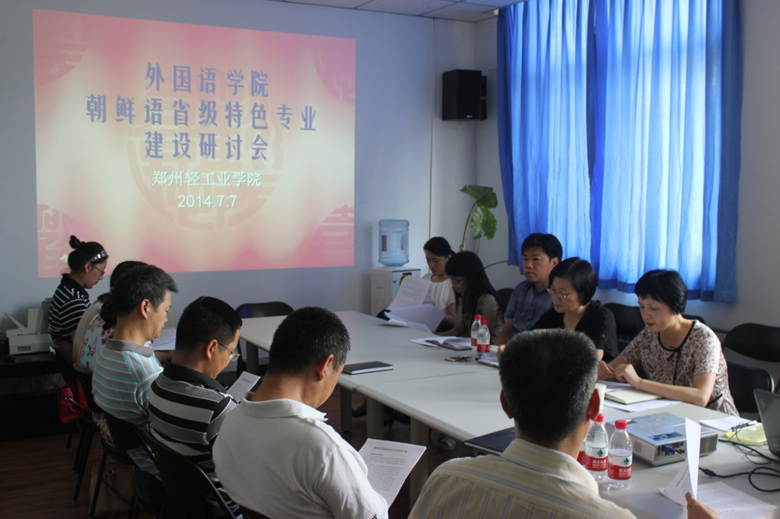 2014年7月7日下午3点外国语学院在东二楼306会议室召开了朝鲜语省级特色专业建设研讨会。会议由外国语学院周麦成副院长主持,教务处王季方副处长、外国语学院领导班子成员、各专业负责人以及朝鲜语专业教师代表参加了此次研讨会。